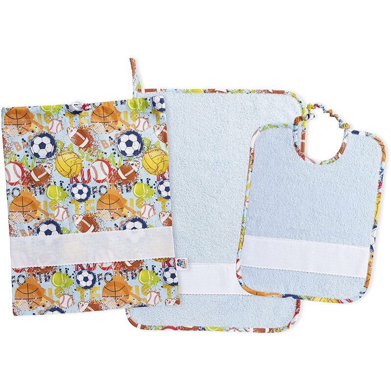 Descrizione Descrizione Set asilo in 100% cotone, made in italy. Il set è composto da un sacchetto 34x42 cm, chiusura con coulisse, un asciugamano 35x50 cm e un bavaglino 28x35 cm, entrambi in spugna colore azzurra con bordo in fantasia sport. Tutti i pezzi che compongono il set presentano un inserto in tela aida ricamabile, alto 6 cm. Le immagini della fantasia possono differire leggermente da quelle nelle fotografie in base al taglio del tessuto. Avviso di sicurezza Nessuno Contenuto della confezione Bavaglino Asciugamano Sacchetto asilo