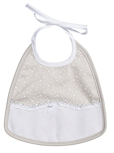 FILET - Bavaglino Realizzato in Piquet di Cotone Stampa Stelline con Tasca in Tela Aida da Ricamare, Ideale per Neonati e Prima Infanzia, Chiusura a Laccetti, 100% Made in Italy, Colore Beige e Bianco