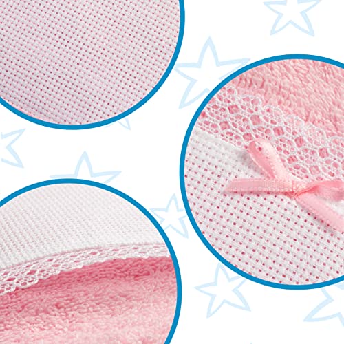 FILET - Bavaglino in Spugna Colorata, Realizzato Interamente a Mano con Tasca in Tela Aida da Ricamare, Ideale per le Neonate e Prima Infanzia, 100% Made in Italy, Color Bianco e Rosa, Misure 18x21 cm