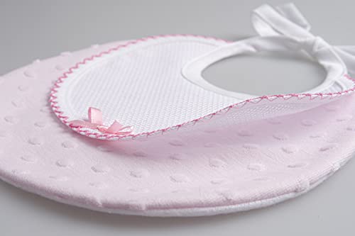 Filet - Bavaglino Tondo in Morbido Tessuto con Pois Effetto 3D con Inserto in Tela Aida da Ricamare, Chiusura con Laccetti, Made in Italy, Colore Rosa