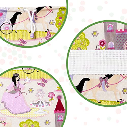FILET - Set Due Sacchetti Asilo in Cotone Stampato, Sacchetti Cambio, Sacchetti Corredino, Sacchetti Scarpe, con Tela Aida da Ricamare, Made in Italy, 42 x 34 cm, Fantasia Principesse Beige Rosa