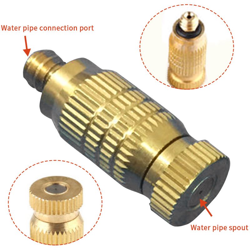 Caratteristiche:100% nuovo di zecca e di alta qualità.UN Filtro su il vostro sistema di nebulizzazione.Si utilizza solo una metà galloni all'ora per ugello.Dotato di un robusto corpo in ottone con acciaio inossidabile orifizio.Ammollo periodicamente in di nebbia ugello detergente per rimuovere i depositi di minerale che puòSi accumulano con l'uso.Ampiamente utilizzato nel settore tessile negozio di umidificazione, del paesaggio, di raffreddamento, umidificazione dell'aria,A spruzzo disinfezione, la quarantena, deodorante purificazione dell'aria, ecc.Specifiche tecniche:Materiale: OttoneColore: Come immagine mostraDimensioni filettatura: 4. 6 millimetri(Diametro) * 5mm (lunghezza)/0.18x0.20 polliciLunghezza totale: 24.8 millimetri/0.98 polliciOrifizio: 0.3 millimetriPressione di esercizio: 20-80 kg/cmPortata: 80-145ml/minMinimo consumo di acqua di 1/2 litri di acqua per ogni ora per ugelloQuantità: 10 pz/borsaIncluso nel Cornici E Articoli Da Esposizione:10pcs x Brass Ugelli di