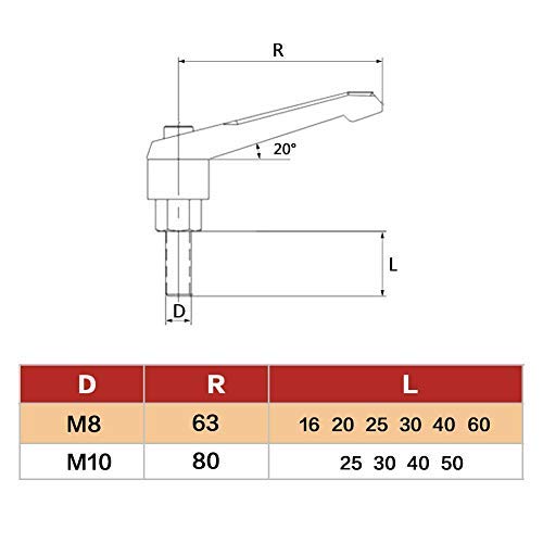 Ci sono quattro diverse lunghezze del filo 25mm 30mm 40mm 50mm per queste leve di serraggio M10 da cui puoi scegliere quella giusta per soddisfare le tue necessità