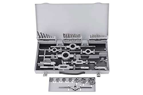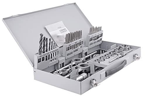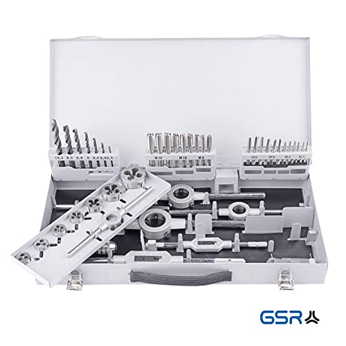 GSR Set di 45 filettature professionali per filettatura metrica, HSS-G, M3-M12, maschi filettati e taglieri, punte per foro centrale, utensili di fissaggio, con cassetta in acciaio