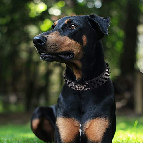 Filhome Collare per cani in pelle PU con borchie e teschio, modello gotico punk, regolabile, larghezza collare per cani di taglia media e grande
