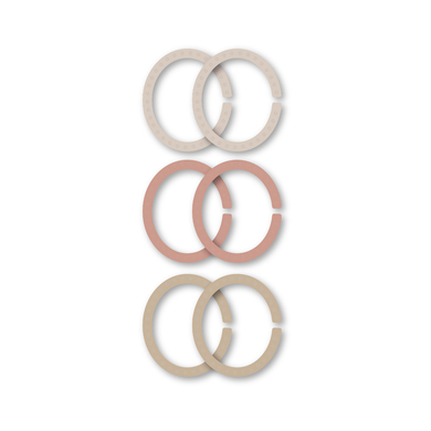 Dettagli del prodotto: Età: dalla nascita Con questi morbidi anelli in silicone i giocattoli del vostro bambino raggiungeranno nuove vette Utilizzate gli anelli per appendere i giocattoli nell'arco giochi, nella carrozzina, nel box, sul fasciatoio o nel seggiolino dell'auto Il set è composto da sei anelli che si possono collegare tra loro per avvicinare il giocattolo al bambino Un singolo anello può essere utilizzato anche come giocattolo lenitivo per la dentizione. Gli anelli sono disponibili in un set nei colori Almond, Misty e Beige. Dimensioni e peso: Misure da assemblato (lunghezza x larghezza x altezza): 7,8 x 6,7 x 6 cm Peso: 0,16 kg Materiale e cura: Gli anelli da gioco morbidi e flessibili sono realizzati in silicone resistente e morbidissimo, 100% privo di BPA e ftalati. Gli anelli sono facili da pulire in lavastoviglie