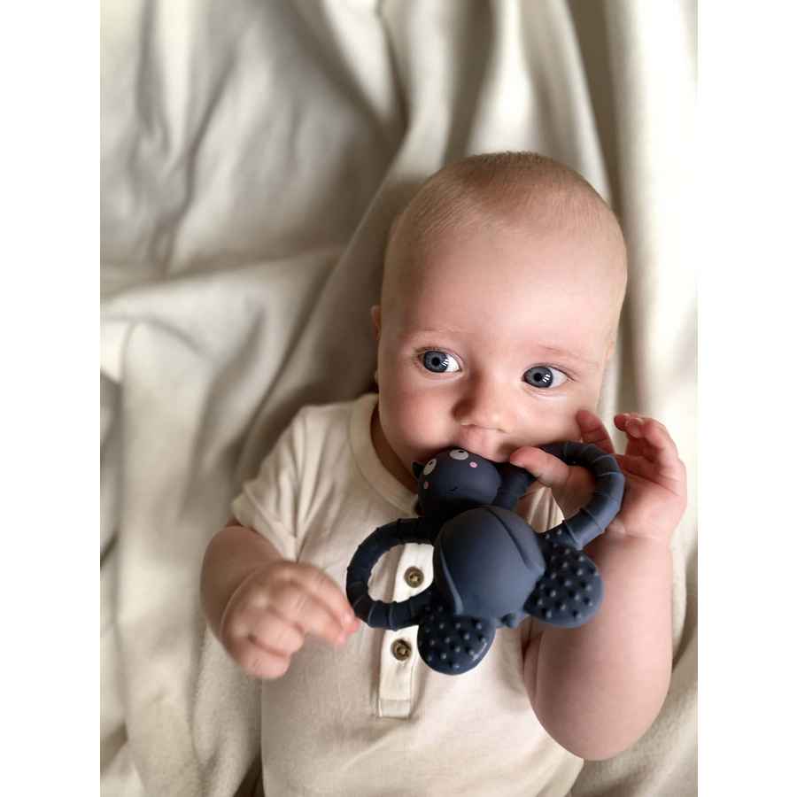 Felix the Fly è stato progettato pensando alla natura nordica. Pensando al cuore di tutti i nostri animali, è stata creata una collezione che contiene molti animali nordici belli e riconoscibili per la decorazione della cameretta e per molte ore di gioco. Felix the Fly è un simpatico anello da dentizione fatto a mano in gomma naturale al 100%. Con la sua faccia simpatica, stabilisce rapidamente un rapporto con il bambino e con le sue ali aperte, offre anche una buona presa per le mani molto piccole. Piccoli punti sono incorporati sulla superficie e tutti i bordi sono morbidi, il che aiuta le gengive doloranti e stimola il senso del tatto allo stesso tempo. Un ottimo prodotto per sviluppare la motricità fine del bambino. Poiché l'anello di dentizione è fatto a mano, la stampa può variare leggermente dall'immagine. Dettagli del prodotto: Dimensioni (lunghezza x larghezza x altezza): 5 x 12 x 10 cm. Materiale: 100% pura gomma naturale, 100% sostenibile e biodegradabile. Dipinto a mano con vernice per alimenti. Senza BPA, ftalati e PVC. Istruzioni per la cura: pulire con un panno umido se necessario. Età: da 0 mesi