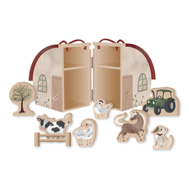 Dettagli del prodotto: Età: dai 18 mesi in su Ci sono ore di divertimento nella fattoria, dove l'immaginazione non ha limiti. La fattoria in legno è dotata di maniglie, per cui è facile da portare con sé come intrattenimento in viaggio La fattoria può essere aperta e invita a giocare intorno e dentro la fattoria. La bellissima fattoria contiene 8 figure diverse, tra cui gli animali più popolari, i recinti e, naturalmente, l'indispensabile trattore, così il bambino può iniziare a giocare da subito La fattoria e gli animali in legno incoraggiano il gioco immaginativo e di ruolo e sono la base perfetta per ore e ore di divertimento. Dimensioni e peso: Dimensioni da assemblato (lunghezza x larghezza x altezza): 14,5 x 23,5 x 9 cm Materiale e cura: Materiale: compensato certificato FSC. Cura: pulire con un panno umido