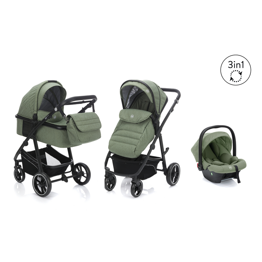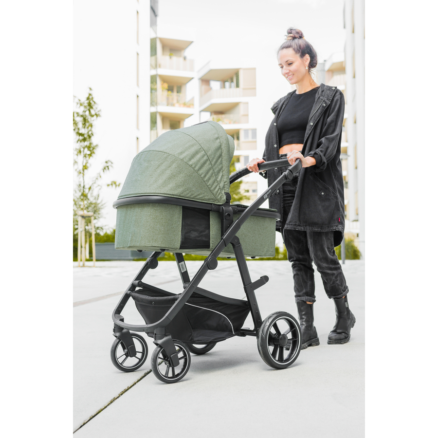 Dettagli del prodotto: Adatto dalla nascita fino a 22 kg di peso corporeo Modern es Design Include seggiolino auto i-size e Adapter per la massima sicurezza Include una navicella fissa con materassino incorporato Pratica borsa fasciatoio con materassino per il cambio per quando si è fuori casa Copertura antipioggia per evitare l'umidità Il copripiedi aggiuntivo offre un piacevole calore nell'attacco del passeggino Ruote anteriori fissabili Schienale regolabile in 3 posizioni per un comfort individuale La seduta del passeggino può essere utilizzata in entrambe le direzioni Maniglia regolabile per facilitare la spinta Tetto estensibile per una maggiore protezione dal sole Ruote grandi per uno scorrimento fluido Cintura di sicurezza a 5 punti per una sicurezza ottimale Dimensioni e peso: Dimensioni (lunghezza x larghezza x altezza): 73 x 64 x 113 cm Ruote anteriori: 17 cm Ruote posteriori: 25 cm Peso: 10,8 kg Materiale e cura: Materiale telaio: Acciaio Materiale rivestimento: 100 % poliestere Istruzioni per la cura: parti in tessuto lavabili a 30°C Incluso nella consegna: i-size Seggiolino auto con Adapter Navicella fissa con materassino Pratica borsa fasciatoio con fasciatoio Parapioggia Copripiedi aggiuntivo per l'attacco del passeggino