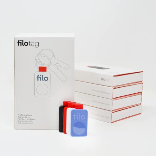 Filo Tag das Allesfinder (Serie 2018). Bluetooth Tracker Key Finder e Telefono Finder Confezione da 4 unità: bianco, nero, rosso e blu. Dimensioni: 25 x 41 x 5 mm. Made in Italy by Filo