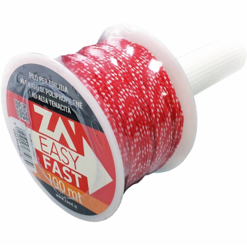 In polipropilene ad alta tenacit. Bobina riavvolgibile con manico girevole. Diametro 1,8 mm. Colore rosso bianco. Mt 100