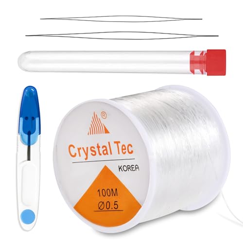 Filo elastico per gioielli da 0,5 mm, filo di nylon, filo elastico per bracciali, con 2 aghi per perline e 1 forbici, filo trasparente per gioielli di perle, bracciali, lavori di bricolage.