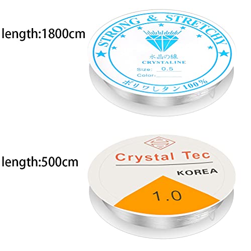 Contenuto: La confezione contiene un rotolo lungo 18 m, 0,5 mm e un rotolo lungo 5 m, 1 mm di spessore di filo di cristallo elastico per braccialetto.