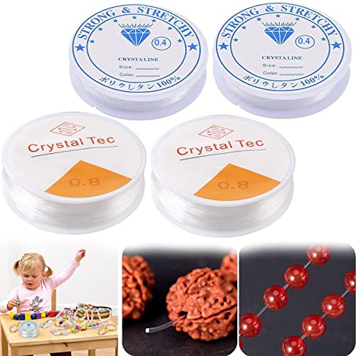 Filo Elastico Trasparente, 4 Rotoli Filo Elastico per Perline, Filo Per Perline Resistente, Filo Trasparente Collana per Realizzare Ornamenti Appesi Artigianali Decorazioni Natalizi(0.4mm, 0.8mm)