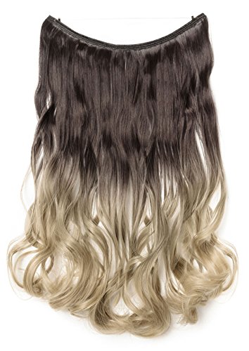 Filo segreto nelle estensioni dei capelli Estensione dei capelli ondulati ricci dritti Lunga boccola Bionda Marrone Colore nero per le donne 20 "Ricci - Castano scuro e biondo cenere