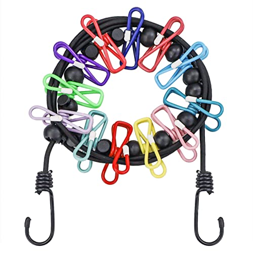 [Convenience Design]: 12 mollette colorate e 2 ganci, regola la spaziatura con 13 perline di gomma nera per impedire loro di raggrupparsi insieme a causa del forte vento