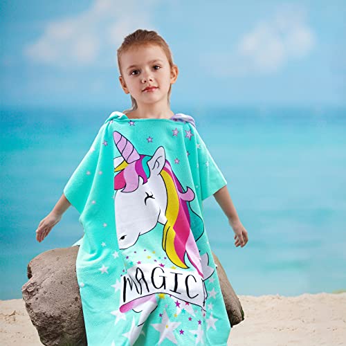 FILOWA Asciugamano Bagno con Cappuccio Bambini Assorbenti Telo Mare Poncho Bambina Asciugamano Unicorno Microfibra Morbido Carino Cartone Accappatoio Animato Ragazza 6-14 Anni