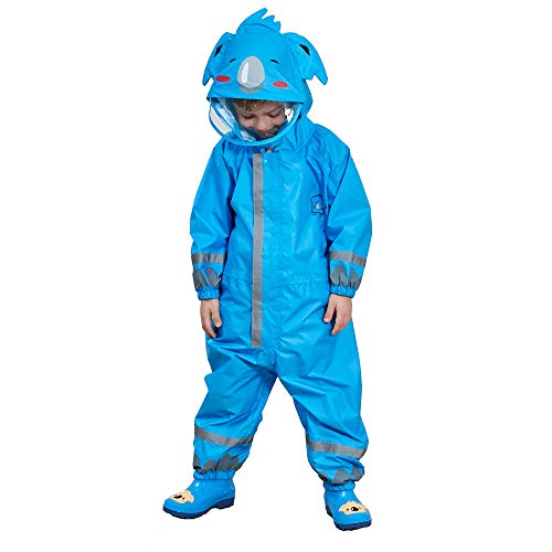 FILOWA Impermeabile Bambino Pioggia Impermeabile Antipioggia Tuta Poncho Portatile Bambini con Cappuccio Ragazze Ragazzi Blu Koala Modello Jogging Tutto in Uno Giacche Impermeabili Bimbo 7-10 Anni