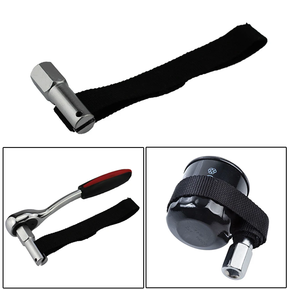 Oil Filter Wrench With Strap Use With 1/2" Drive Spanner Socket Nylon Light Filter Wrench 40CR Carbon Steel Sleeve Belt Filter
