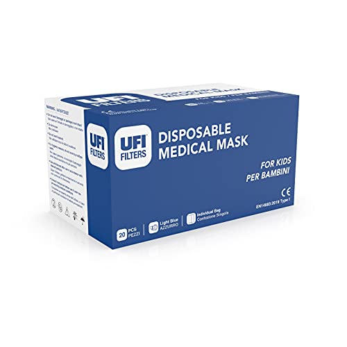 UFI Filters Mascherine CHIRURGICHE MONOUSO per Bambini, Azzurro, 20 Pezzi in confezioni singole