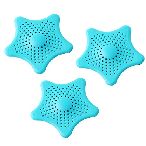 3 filtri di drenaggio in silicone, a forma di stella marina, filtro anti-intasamento, per doccia, vasca da bagno, lavello e cucina (blu)
