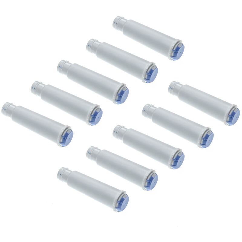 Filtri dell'acqua per macchinetta da caffè automatica - Articolo nuovo, in perfette condizioni e in confezione originale - Durata: ca. 2 mesi (ca. 60l d'acqua) Il filtro dell'acqua è riempito con scambiatori di ioni e con carbone attivo argentizzato. Previene in modo sicuro i depositi di calcare nella Sua macchina del caffè, prolungandone la vita. Allo stesso tempo, la filtrazione di sostanze che alterano il sapore migliorerà l'aroma di acqua e caffè. I sali minerali e i fluoruri essenziali rimarranno, però, nell'acqua. Con questo filtro è possibile ottenere un caffè gustoso e sano. L'articolo non è del produttore originale. Accessorio di alta qualità di vhbw. Contenuto della spedizione: - 10 x filtro Specifiche tecniche: - Diametro superiore: 43,5mm - Diametro inferiore: 27,5mm - Altezza: 15,2cm - Durata: ca. 2 mesi (ca. 60l d'acqua) - Vano nel serbatoio dell'acqua: rotondo - Peso: 89g - Colore: blu / bianco Compatibile con i seguenti modelli: - Nivona CafeRomatica: 855 Sostituisce