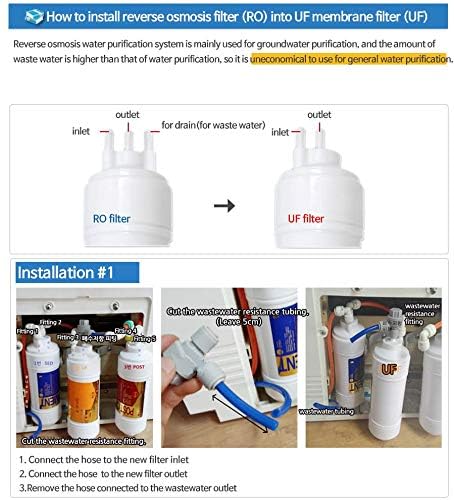 2 ° filtro: UF Membrane Filter 1EA (12-16 mesi) è un filtro da 0,1-0,4 micron con una funzione di filtrare solo le impurità lasciate nell'acqua e passare solo acqua pulita contenente minerali naturali. (1 pezzo) (nota: 2 nodi in alto - vedere la seconda immagine per una corretta installazione)