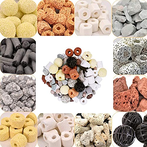 Mezzi filtranti per acquari: inclusi anelli in bioceramica, bioball in ceramica, carbone attivo, roccia vulcanica, ecc., 12 tipi di combinazioni di media filtranti. Riutilizzabile, durevole e di lunga durata.