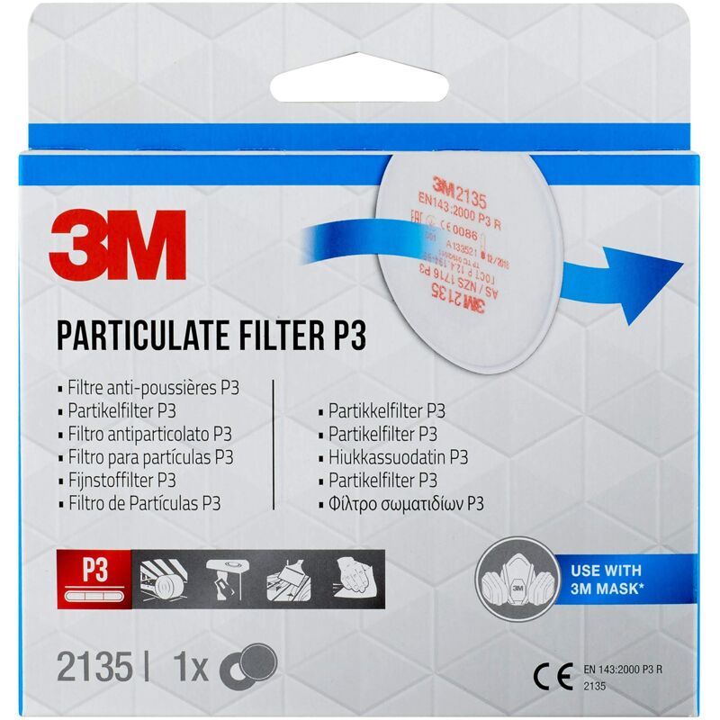 Il filtro antiparticolato 2135 di 3M è il nostro filtro di ricambio per le maschere facciali riutilizzabili delle serie 6000 e 7000 di 3M. Forniscono protezione P3 da livelli alti di polveri sottili e nebbie a base acquosa od oleosa e non contengono componenti in lattice di gomma naturale.