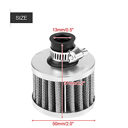 Filtro Aria di Aspirazione per Auto Kit Filtro di Aspirazione Aria Fredda Universale da 13 Mm Coperchio So per Carter(Argento) filtro aire conico, so vapori olio, filtro so olio, filtro aire 1