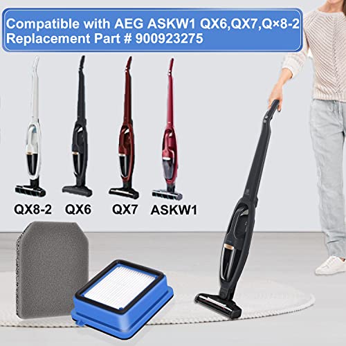 Filtro Aspirapolvere per AEG ASKW1, QX6, QX7, QX8-2, Filtro di Ricambio Accessori Aspirapolvere per AEG QX8-2-anim QX6-1-400g, 2 filtri pre-motore e 2 filtri igienici