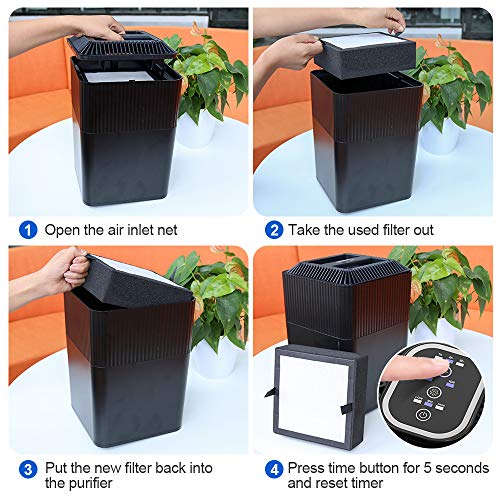 Filtro depuratore d'aria 4 in 1 con prefiltro, filtro HEPA vero, filtro a carbone attivo e filtro in cotone per purificatore d'aria nero -2PCS