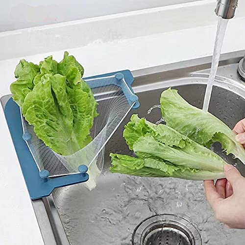Filtro per lavello ad angolo, filtro per lavello triangolare a tre supporti, filtro per lavello multiuso (1 supporto + 100 sacchetti filtro) (Blu (1 supporto+100 filtro))