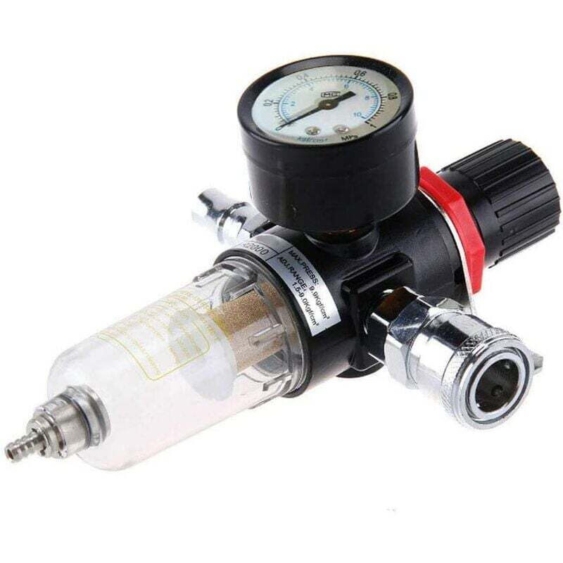 Questo regolatore del filtro dell'aria può rimuovere particelle solide e condensa con aria compressa e preparare adeguatamente l'aria per molti tipi di strumenti e attrezzature ad aria compressa. Raccomanda l'intervallo di pressione di regolazione: 0-1,0 Mpa. Filtrazione delle particelle: 40 micron. Dimensione della porta di ingresso e uscita del regolatore: 1/4" BSP Realizzato in alluminio e plastica di alta qualità, questo articolo è più robusto di altri e più durevole. Aiuta a proteggere i tuoi utensili pneumatici con una durata molto più lunga.< /p> Non importa quanto sia grande la pressione di ingresso e le fluttuazioni del flusso, mantenere sempre una pressione di uscita stabile. Può essere utilizzato in compressori d'aria, utensili pneumatici, installazione di collegamenti del gas, filtrazione efficace dell'umidità dell'aria, ecc. Caratteristiche: 1.Questo regolatore del filtro dell'aria può rimuovere particelle solide e condensa con aria compressa e preparare adeguatamente
