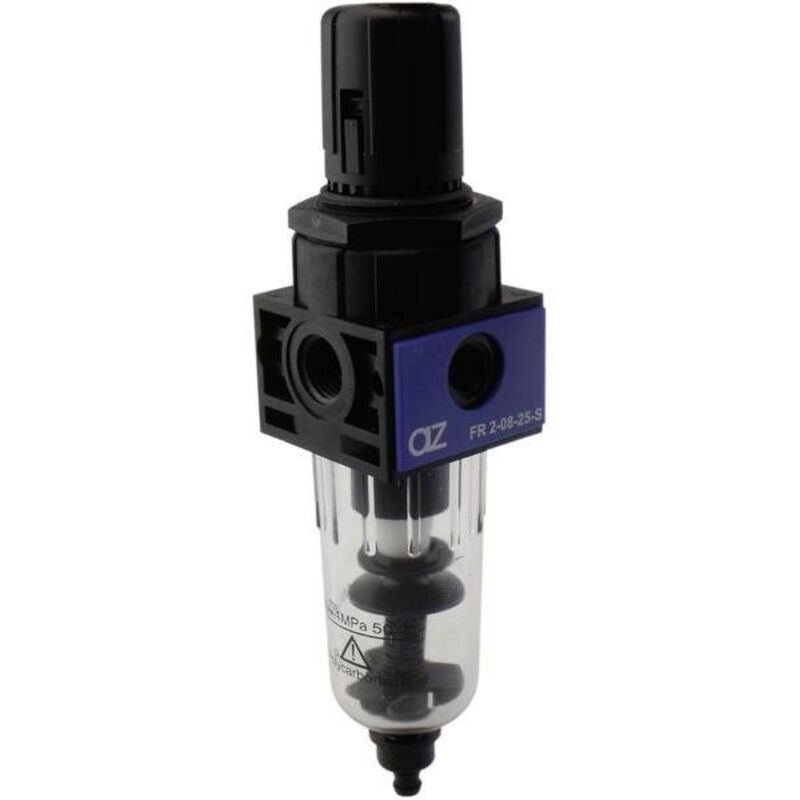Dettagli tecnici Collegamento (dettaglio) G1/4 Filettatura interna 1/4 Modello (in generale) Senza manometro Tipo prodotto Filtro regolatore Separazione di umidità: 90% Contenuto recipiente: 12 cm³ Pressione differenziale: 0,2 bar Regolatore di pressione del filtro La combinazione del regolatore di pressione del filtro offre sempre la corretta pressione d'esercizio e allo stesso tempo fornisce un'aria compressa pulita. In questo modo è possibile migliorare la sicurezza dell'operazione e offrire una maggiore durata alle periferiche collegate, quali, ad esempio, cilindri o valvole. Un regolatore di pressione incorporato per un'impostazione del filtro e della pressione di ingresso corretta garantiscono in tal modo aria pulita e una maggiore durata delle attrezzature. Caratteristiche Sistema ciclone ed elemento del filtro integrato Regolatore di pressione a pistone con scaricamento Scarico semi-automatico di umidità Installazione verticale. Incluso nella consegna null Requisiti di sistema