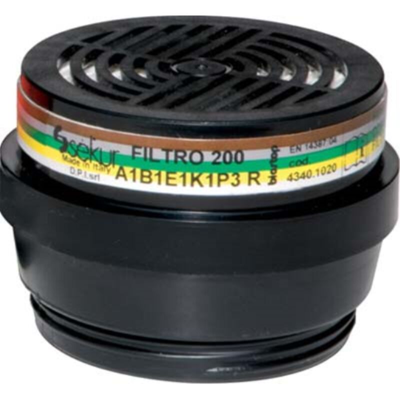 Filtro serie 200, antigas, per maschere. Conforme alla norma EN 14387. Contiene carbone attivo granulare che blocca chimicamente e fisicamente gas e vapori contaminanti. Tipo di filtro e classe di filtrazione: A1. Protezione da: gas e vapori organici. Colore: marrone.