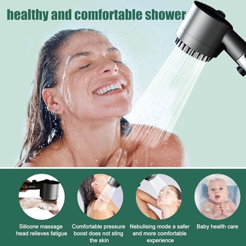 3 Modalità Doccia: Questa doccetta ha 3 modalità di spruzzo, il flusso d'acqua è più delicato, offrendoti un'esperienza di doccia diversa. Basta girare la maniglia sul retro della doccia per cambiare facilmente modalità e godersi un bagno confortevole