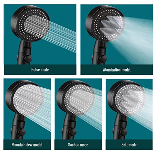 Filtro Soffione Doccia Alta Pressione, Risparmio Idrico Doccia, 5 Funzioni Getto Doccia Soffione Multifunzionale ad Tubo da 1.5M Flessibile Doccia Nero