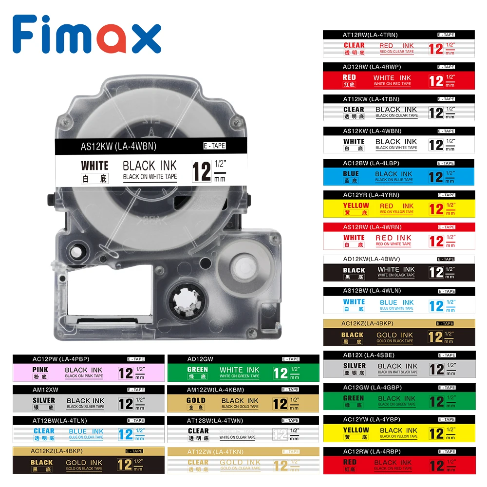 Fimax 1Pack SS12KW LC-4WBN Compatible for EPSON King/Jim Black on White 12mm ST12KW Label Maker For LW-300 LW-400 LW-600P SR530C