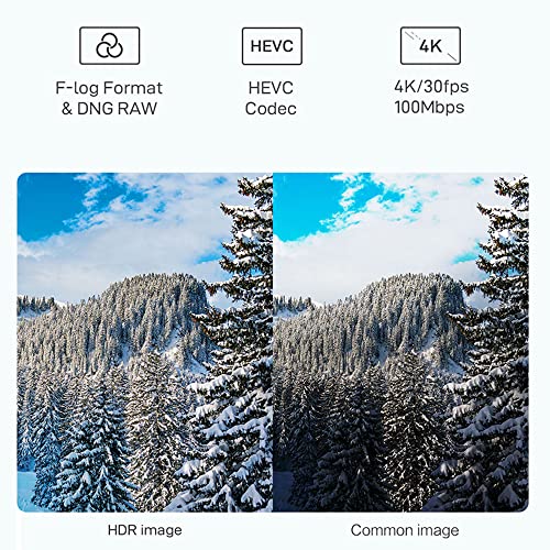 [Video 4K HDR]: la fotocamera offre video 4K / 30 fps e un'elevata gamma dinamica, che rende il filmato più chiaro. I video sono registrati nel codec H.265 / HEVC, con il formato DNG e F-Log supportato. Goditi un'esperienza visiva professionale sia che invii un video a un amico o che modifichi il tuo prossimo successone.