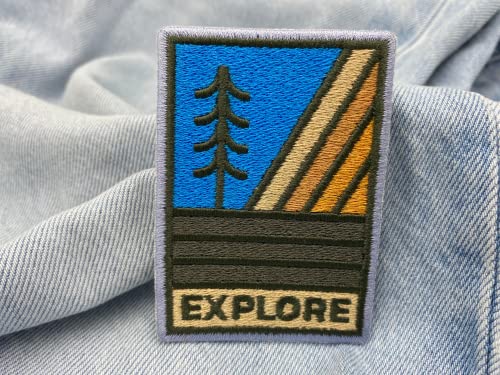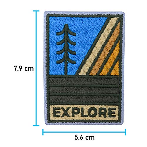 Finally Home Adventure Collection: Explore toppa termoadesiva, con albero, per escursioni, attività all'aperto, montagne, da stirare, da trekking, adatta anche per zaini