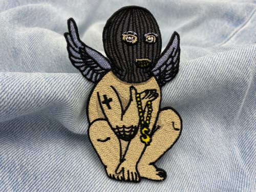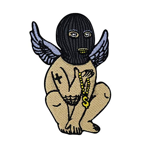 Finally Home - Angelo gangster con maschera passamontagna, toppa termoadesiva, toppa da stirare in stile tatuaggio e hip hop