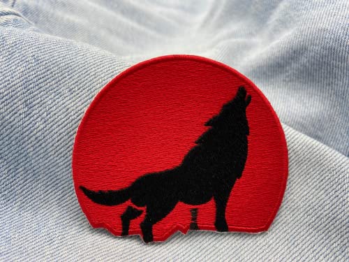 Finally Home Toppa termoadesiva da applicare con il ferro da stiro, motivo: lupi rossi, toppe a forma di luna rossa