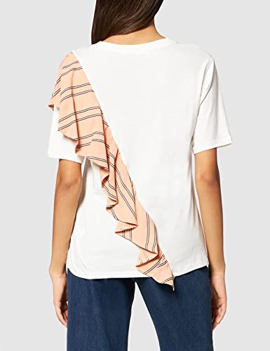 Find. Asymmetric Frill, T-Shirt Donna, Bianco (White), Large