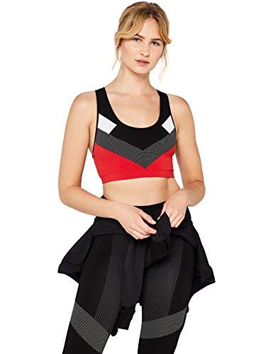 FIND Colour Blocked Cropped, Camicia sportiva Donna, Nero (Black/red/white), Small