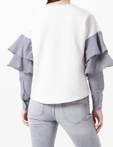 Find. Contrast Ruffle Sleeve, Maglia a Maniche Lunghe Donna, Avorio (Ivory), Small