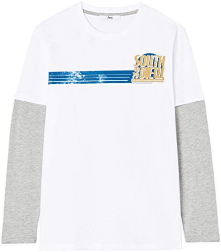 Find. South View Print Long Sleeve, Maglia a Maniche Lunghe Uomo, Bianco (White 003), X-Large