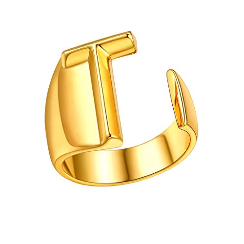 FindChic Anelli con Lettera T Donna Uomo Placcato Oro Ridimensionabile Anello Aperto Anelli Iniziali