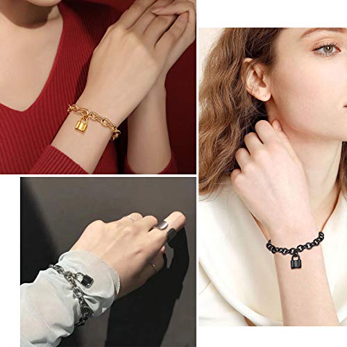 ❤ FLAIR STYLISH ❤ Un'atmosfera vintage per aggiornare i tuoi armadi, il ciondolo a forma di lucchetto divertente e spigoloso fatto a mano è appeso a una catena a maglie rotonde d'acciaio color argento, rifinita con una chiusura a moschettone, questo bracciale a serratura può essere regolato per una vestibilità perfetta.