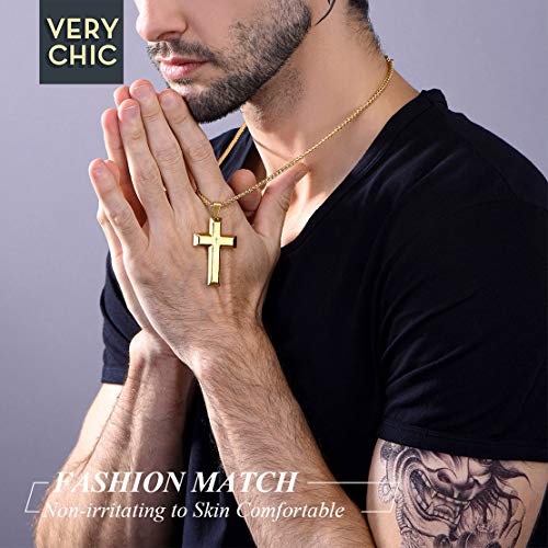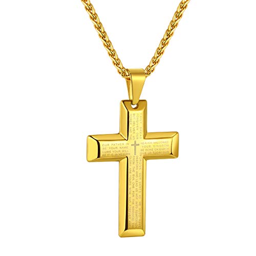 FindChic Croce Collana Uomo, Personalizzato Oro 18k Placcato Acciaio Inossidabile 22 Pollici Croce E Catena Croce Latina Gioielli Cristiani Regalo per Gli Uomini, Bibbia Verse Croce Collana